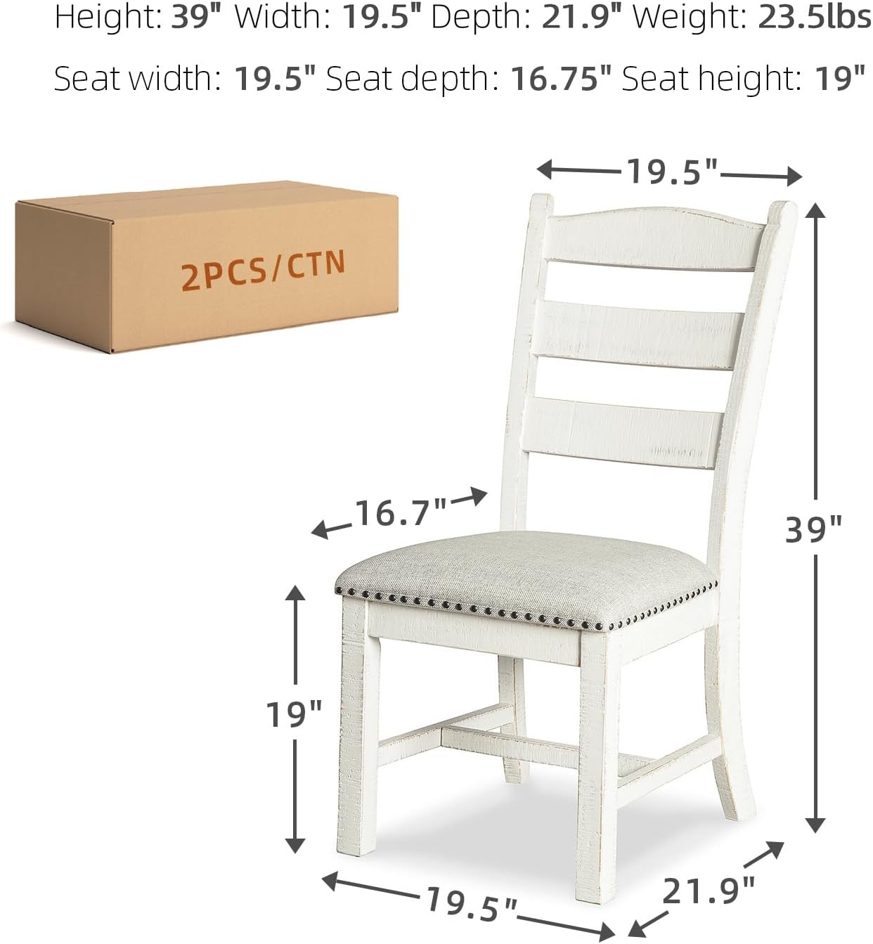 Valebeck Vintage Farmhouse Cushioned Dining Chair, 2 Count, Whitewash